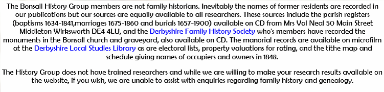 Bonsall is a village of 1000 inhabitants in the Derbyshire Dales on the edge of the Peak District. It is five miles from Matlock and 18 miles from Derby.
